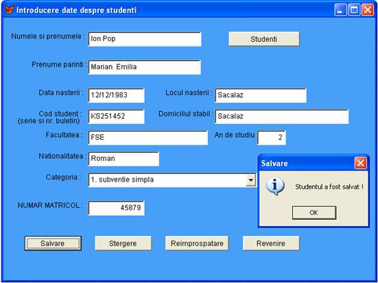 Messagebox('Datele au fost introduse !',64,'salvare ')