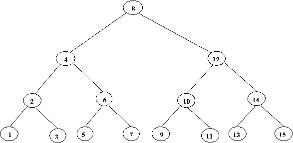 Algoritmul este echivalent cu un arbore de decizie. Nodurile reprezinta numarul cheii testate. In Figura 3 este prezentat arborele de decizie pentru n=1