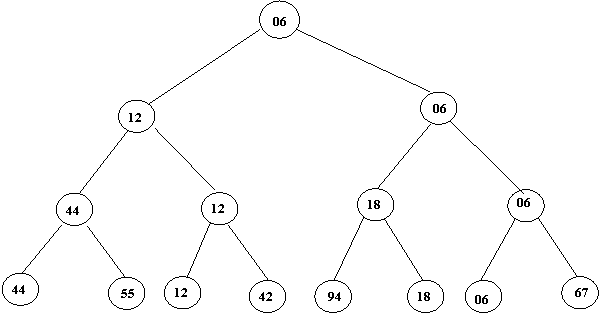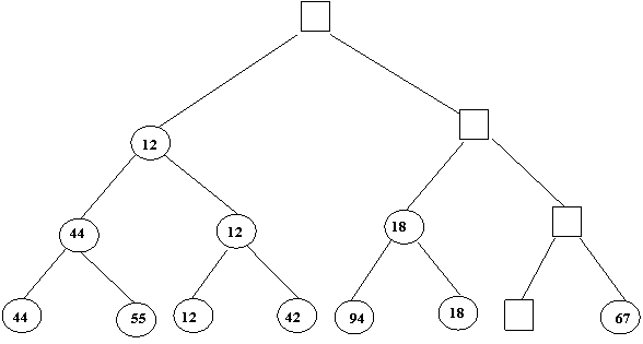 Cu numai n-1 comparatii se poate construi un arbore in care radacina este cel mai mic dintre toate elementele sirului (asa cum rezulta din Figura 13).