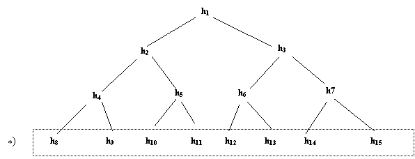 Pentru a se realiza sortarea unui sir se incepe prin a construi un heap prin extinderi succesive la stanga. In Figura 18 este considerat un exemplu in care sirul dat are 8 elemente h , h , , h