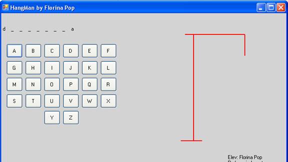 Jucatorul trebuie sa apese pe un buton ce reprezinta o cifra a alfabetului daca considera ca aceea cifra se afla in cuvantul dat .