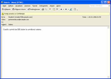 Se deschide fereastra mesajului. Observati comentariul din partea de sus a ferestrei mesajului care afirma ca mesajul este confidential.