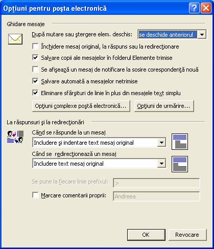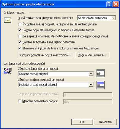 Este afisata caseta de dialog Optiuni pentru mesaj.