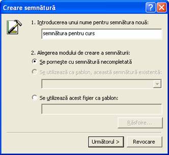 Sa adaugati o semnatura unui mesaj de posta electronica.