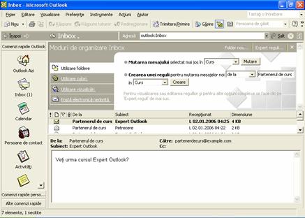Regula este creata. Mesajele primite de la partenerul de curs vor fi mutate in folderul Curs.