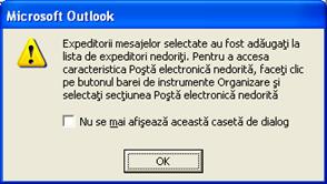 Astfel se identifica actiunea pe care Outlook ar trebui sa o efectueze atunci cand este detectata corespondenta nedorita. Mesajul poate fi mutat sau codificat pe culori.