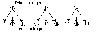 In aceste conditii, la a doua extragere, la fel ca si la prima, exista probabilitatea p=1/3 de a extrage o bila alba, si probabilitatea q=2/3 de a extrage o bila neagra. Ceea ce ne intereseaza este probabilitatea combinatiilor care pot rezulta din a doua tragere.