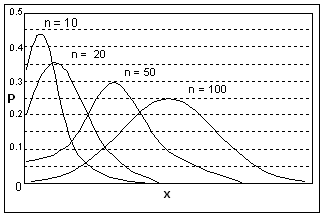 In aceasta situatie, p ¹ q, iar asimetria distributiei tinde sa se estompeze daca n creste; pentru valori suficient de mari ale lui n, distributia poate fi considerata practic simetrica, chiar daca p ¹ q (Figura 8.17).