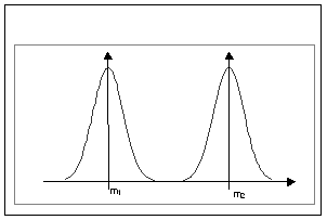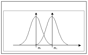 Pentru a putea rezolva aceasta problema, se poate studia intervalul de confidenta al mediei in fiecare esantion. Daca intervalele de confidenta se suprapun mult, toate valorile care cad in zona de suprapunere pot apartine atat unei distributii, cat si celeilelte, iar diferenta observata poate fi datorata variatiei de esantionaj (hazardului) - Figura 8.52.