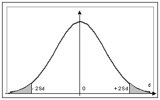 O diferenta va fi deci considerata ca semnificativa cu un prag de semnificatie de 5% daca este superioara lui 2 Sd: d > 2 Sd