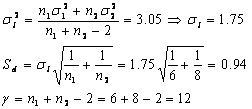 Þ t0.05 Sd 0.94 = 2.05 si