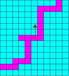 Vom folosi tehnica backtracking. Problema este tipica pentru aceasta tehnica, astfel incat tot ceea ce avem de facut este sa explicitam functiile care reprezinta testul de validitate si de finalitate ale unei solutii. Singura dificultate, aparenta insa, provine de la faptul ca stiva pe care o vom folosi este putin mai complicata. Sa ne aducem aminte ca prin stiva nu am inteles neaparat un vector, ci pur si simplu o structura de date, ordonata, in care operatiile de introducere sau extragere se fac la un singur cap. De obicei, am modelat o stiva printr-un vector, dar asta nu inseamna ca nu exista si astfel de stive ! Concret, stiva cu care vom lucra va cuprinde coordonatele punctelor parcurse pana la un moment dat.