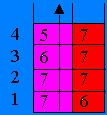 De exemplu, succesiunea: (7,6) (7,7) (6,7) (5,7) are semnificatia unui drum prin labirint inceput in punctul de coordonate (7,6) si continuat la dreapta cu o pozitie si apoi in sus cu doua pozitii. Corespunzator acestei situatii, stiva va contine valorile pe care le vom reprezenta in mod intuitiv prin :