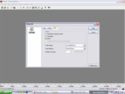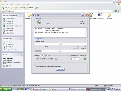 Se selecteaza butonul Write si se va inscriptiona CD-ul (veti vedea imaginea urmatoare).