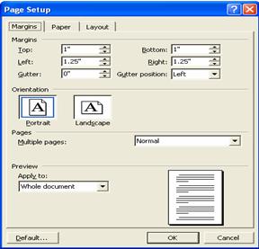 tipul de hartie (A4, Letter, etc.) - sectiunea Paper a ferestrei Page Setup,