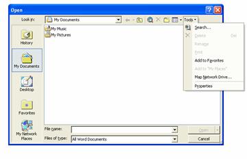 deschiderea rapida a unui document se face selectandu-l din meniul File, unde exista lista ultimelor documente deschise, sau selectandu-l, daca apare, in lista din optiunea My Recent Documents din meniul Start.