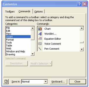 optiunea Insert si din lista Commands, optiunea Equation Editor. Se face click cu mouse-ul pe Equation Editor si se