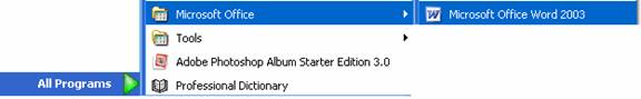 Start - All Programs - Microsoft Office - Microsoft Office Word 2003