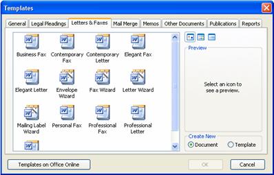 Pentru Sabloane (Templates) daca alegeti optiunea On my computer puteti opta pentru diverse categorii (ex. Letter & Faxes) |