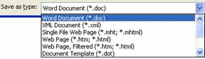Dupa cum se poate observa, fisierul poate fi salvat atat ca Word Document (*.doc) cat si ca Web Page, Document Template, Rich Text Format sau o versiune anterioara de Word. Veti valida tot prin Save.