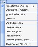 Microsoft Office Word Help (F1) deschide o zona de activitati in partea dreapta cu o posibilitate de cautare dupa un anumit element (ex. paragraph). Ceea ce s-a obtinut este o lista de rezultate cu legatura catre zone de articole sau de ajutor (help) privind subiectul (zonele sunt scrise cu gri). Daca alegeti zona de articole si aveti o conexiune la Internet va va deschide o pagina web de pe un site, de obicei office.microsoft.com. Zona de help va va duce catre o structura arborescenta de continut. Atentie, helpul este in limba engleza, deci si cuvintele cautate va trebui sa le scrieti in aceeasi limba.