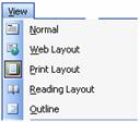 Din meniul View se poate alege modul in care dorim sa lucram cu documentul.