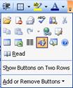 Bara de instrumente poate oferi mai multe elemente decat ofera initial. Se pot adauga sau sterge pictograme dupa cum doriti. Daca doriti ca elementele existente sa nu mai fie afisate doar pe un singur rand apasati pe butonul din capatul randului si alegeti optiunea Show Buttons on Two Rows:
