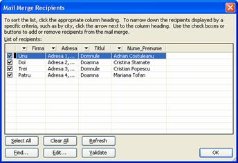 5.1.3 Deschiderea, pregatirea unei liste de corespondenta sau a unui alt fisier de date pentru imbinare.