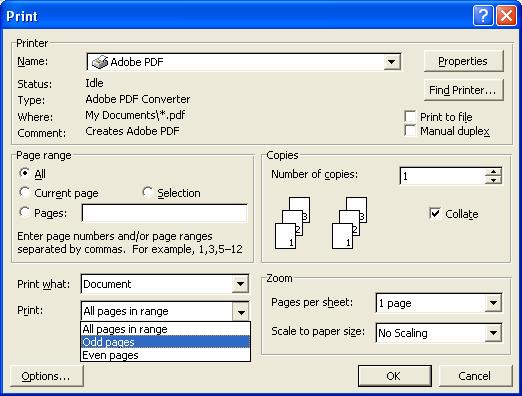 6.2.1 Alegerea optiunilor de tiparire cum ar fi: tiparirea intregului document, sau a unor pagini anume, numarul de copii dorit.