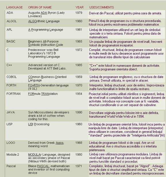 Prezentarea posibilitatilor oferite de limbajele de programare: