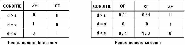 Instructiunea de comparare a doua valori pozitioneaza, bineinteles, toti indicatorii, dar in functie de interpretarea data de utilizator celor doua valori, sunt semnificativi numai anumiti indicatori, in functie de tipul numerelor: