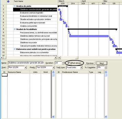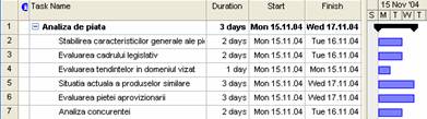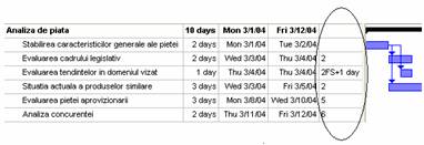 exemplul curent, se va selecta prima activitate a proiectului (Analiza de piata) si se