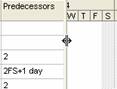 Cifrele din coloana Predecessors semnifica numarul activitatii precedente, asa cum apare el in prima coloana a tabelului. Acolo unde se prescrie si o intarziere, sau o anumita relatie de dependenta temporala, aceasta este simbolizata printr-o prescurtare (de tipul celor prezente in tabelul 2.1) si prin decalajul de timp (care in cazul exemplelor este negativ - ceea ce inseamna ca o activitate incepe mai devreme decat se termina alta, de exemplu, cu un anumit numar de zile - dar poate fi si pozitiva -ceea ce ar insemna ca o activitate incepe, de exemplu, dupa ce a trecut un numar de zile de la terminarea precedentei).