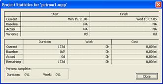 In caseta de dialog Project Information se apasa butonul Statistics.
