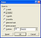 Stabilirea nivelului de detaliu la care se poate vizualiza diagrama Gantt se face cu ajutorul campului Zoom din meniul View (vezi figura 2.12).