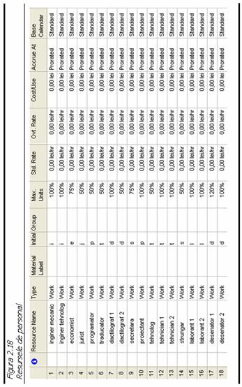 Figura 2.8 Tabloul complet al relatiilor dintre activitati |