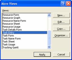 Introducerea activitatilor se face cel mai adesea folosind vizualizarea de tip Gantt. In aceasta faza se vor furniza Microsoft Project numele activitatilor, duratele acestora, legaturile (de tip succesiune temporala) dintre ele. Tot acum se poate face o verificare a duratei totale a proiectului (dupa ce s‑au precizat duratele si legaturile dintre activitati) si se pot defini activitati centralizatoare sau puncte de reper (milestones) in evolutia proiectului.