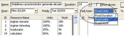 In campul Duration se specifica durata activitatii. Aceasta se poate exprima in luni, saptamani, zile, ore, minute.