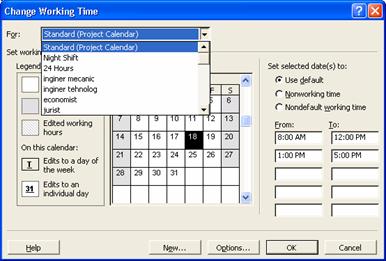 Se observa ca tot aici se poate defini pentru o anume zi un timp de lucru nestandard (Nondefault working time) - vezi figura 2.15.