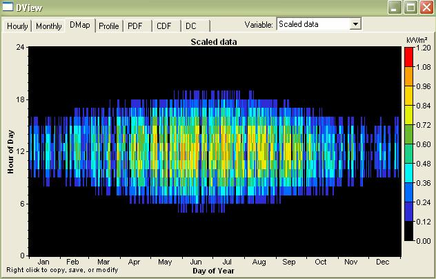 O alta reprezentare a radiatiei solare (gradient) dar de aceasta data in functie de orele zilei si luna din an este cea din Figura 5.