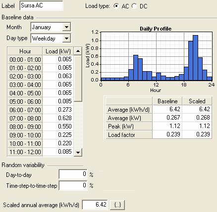 Pentru a incepe analiza HOMER trebuie mai intaii conceputa o analiza a consumului de energie in medie de-a lungul unei zile (24h), fiecare aparat cat consuma de la ora la ora, iar apoi totalizarea consumului de putere pe intervale orare. Astfel se pot observa zone de cerere minima si zone de cerere maxima de energie (dimineata, seara, in timpul zilei). Aceasta evaluare se face de obicei in consultand clientul si deoarece programul HOMER nu permite introducerea de sarcini separate ci doar totale pe