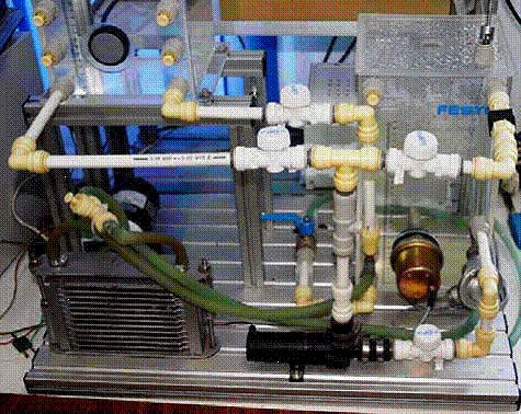 Instalatia tehnologica este compusa din doua rezervoare transparente unul superior(montat pe patru bare de aluminiu) si unul inferior(montat pe profilul de baza al instalatiei).