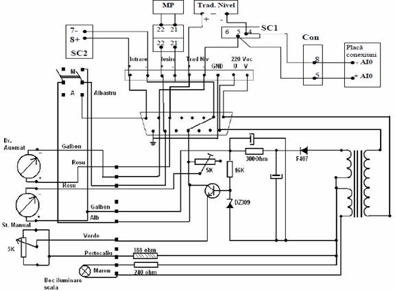 din rezervorul inferior in cel superior prin sistemul de conducte,coturi si tevi de racordare Aceasta circulatie a apei este asigurata de o pompa de apa actionata de un motor electric(24V c.c).