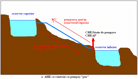 Un sistem de tevi combinate cu 2 robinete permit dirijarea apei refulate de pompa fie spre rezervorul superior fie spre cel inferior.