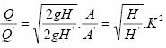 Dar viteza de curgere determinata din ecuatia de conservare a puterii v2=2gH, gHv2= si in acest caz se poate determina raportul vitezelor de curgere a apei: