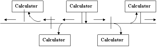 Un mesaj din partea unui calculator catre alt calculator trebuie transmis in retea in sensul invers acelor de ceasornic, pana cand ajunge la destinatie.
