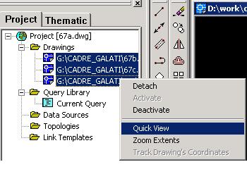 3. Din meniul Project cu tasta CTRL apasata selectam plansa sau plansele carea apar sub meniul Attach si apoi Quick View. Dupa aceea Zoom Extents.