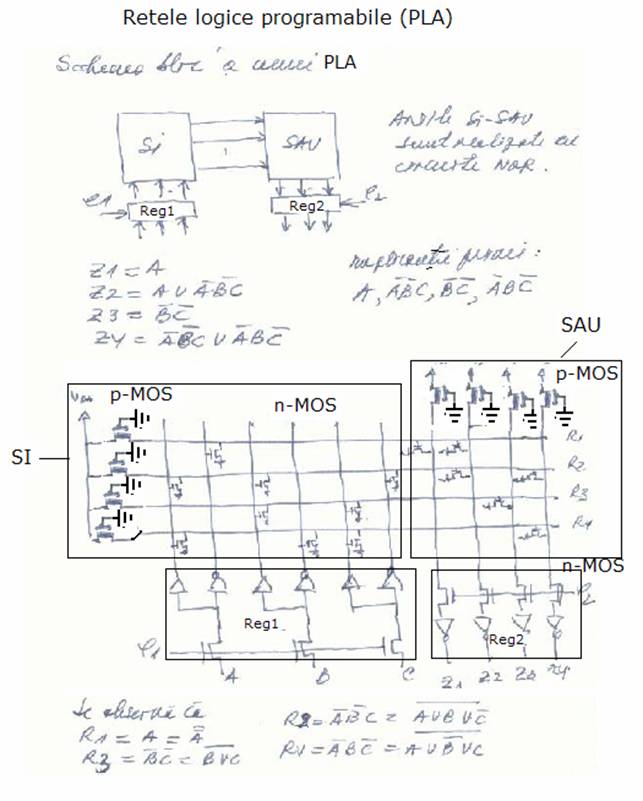 Explicatie: Registrul de jos stanga (Reg 1) contine toate intrarile, care pot fi negate sau nu.