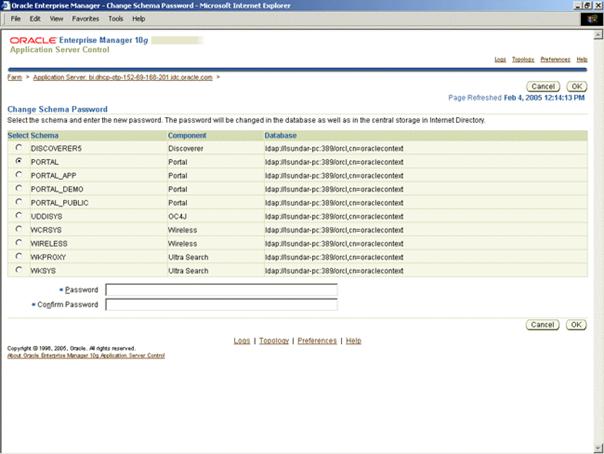 Portlet-urile Oracle Discoverer necesita definirea unei conexiuni la Oracle Discoverer din cadrul portalului, lucru care se poate realiza de catre utilizatori direct sau utilizand Oracle Application Server Control. In cazul de fata a fost utilizat pentru definirea unei conexiuni publice Oracle Application Server Control.