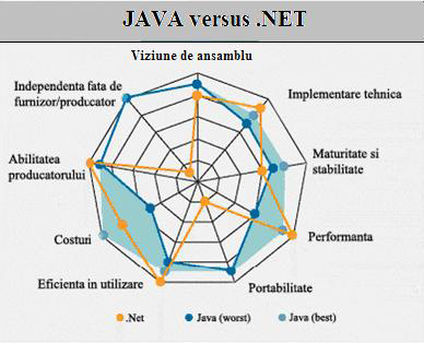 dincolo de criteriile de performanta, trebuie sa se tina cont de eficienta platformei si de productivitatea furnizata in dezvoltarea aplicatiilor. Daca se masoara productivitatea numai pe baza numarului de linii de cod, .NET prezinta avantaje clare fata de Java. Crucial este insa cat dintre aceste linii de cod trebuie sa fie scrise manual de catre dezvoltatorul de aplicatii. Aici intervine, insa, atat procesul automatizat de dezvoltare, cat si inteligenta mediului de dezvoltare software;